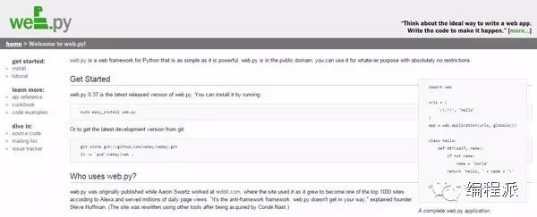 Web.py是一个轻量级的开源Python Web框架,小巧灵活、简单并且非常强大,在使用时没有任何限制。目前Web.py被广泛运用在许多大型网站,如西班牙的社交网站Frinki、主页日平均访问量达7000万次的Yandex等。