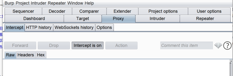 Interception is off表示拦截功能关闭,不再拦截通过Burp Proxy的所有请求数据。