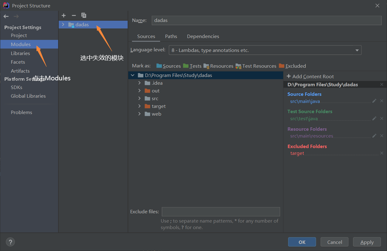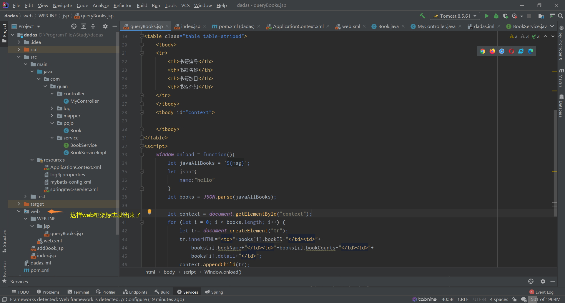 大家可以和第一张图对比一下web目录全少圈点就是框架失效了,失效的原因:重启idea可能会导致框架失效