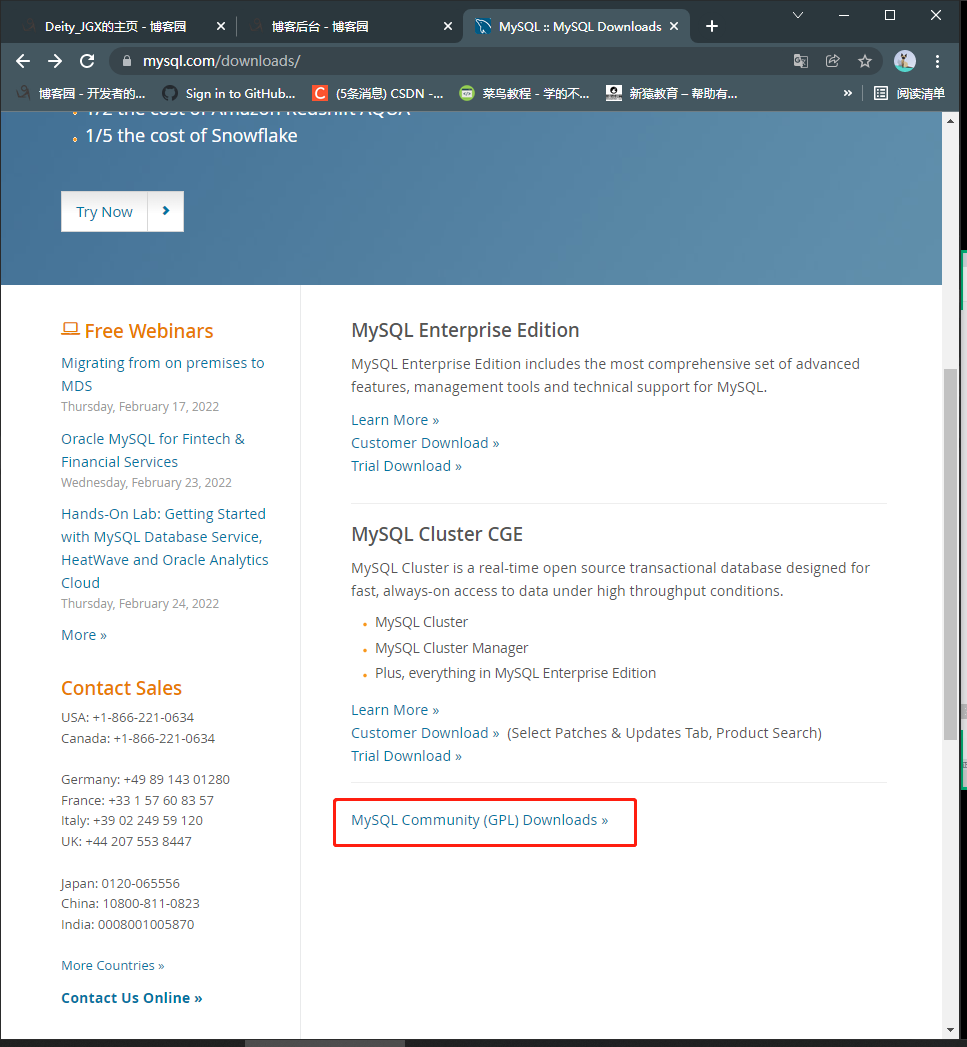 03 下拉页面 找到并点击 MySQL Community (GPL) Downloads