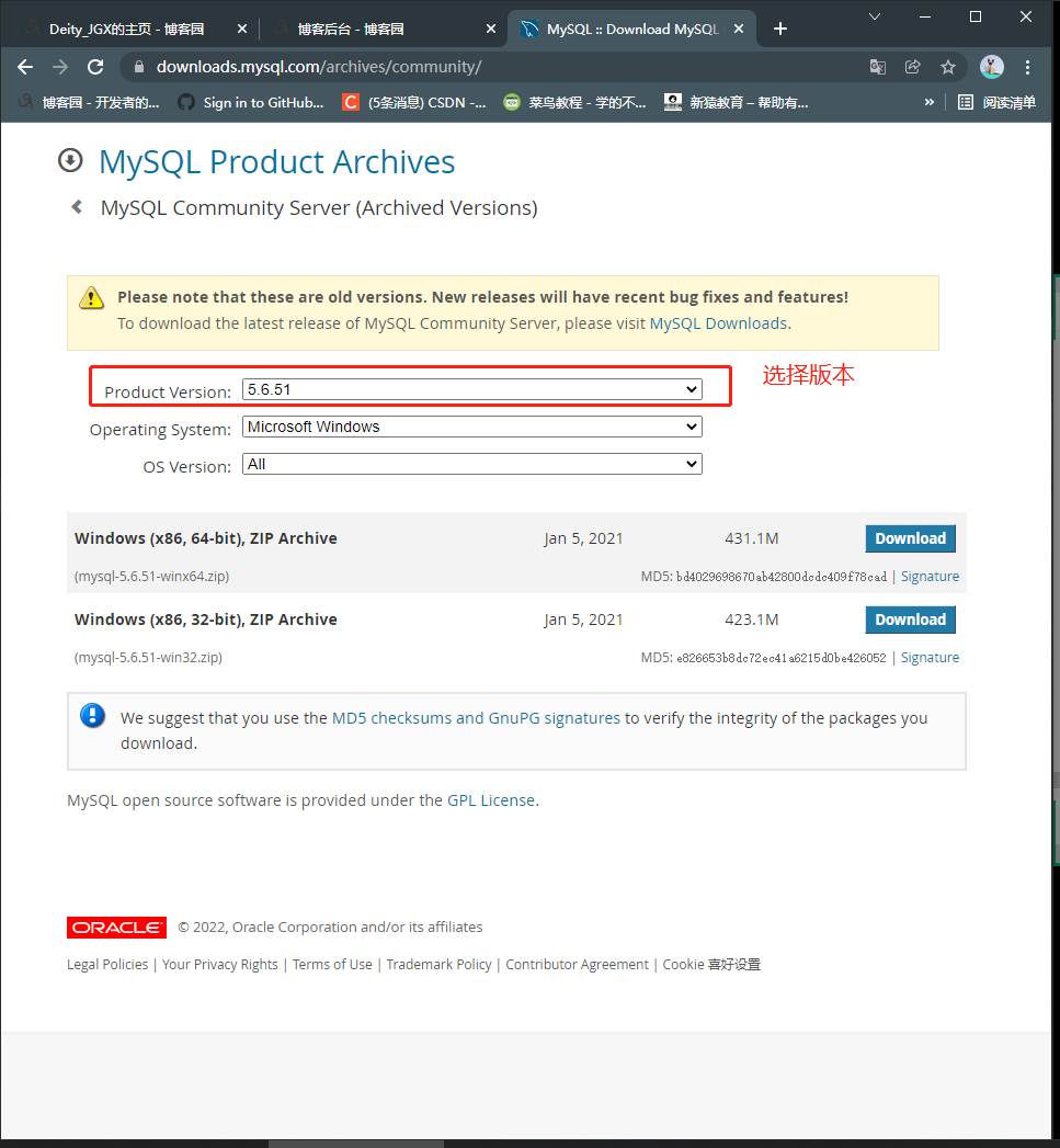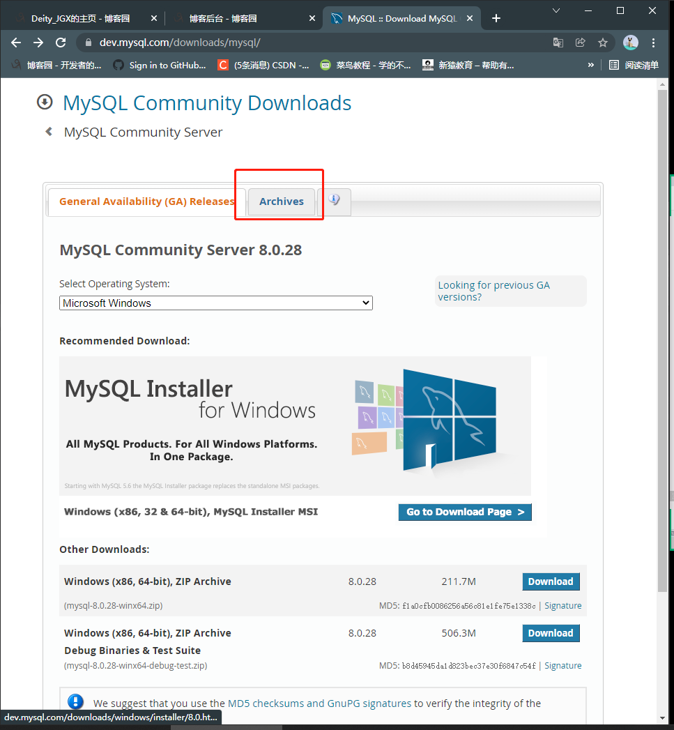 05 点击 Archives 选择版本下载压缩包(客服端 服务端)