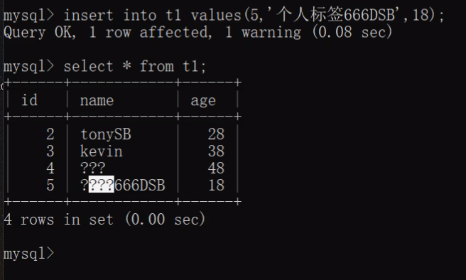 insert into 表名 values(数据,数据,数据); # 单条数据