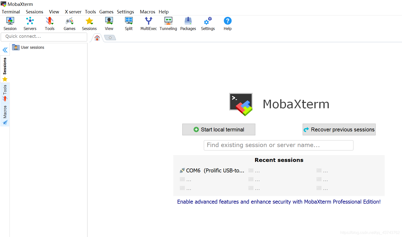 USB驱动安装成功后,在Session界面配置串口的信息: