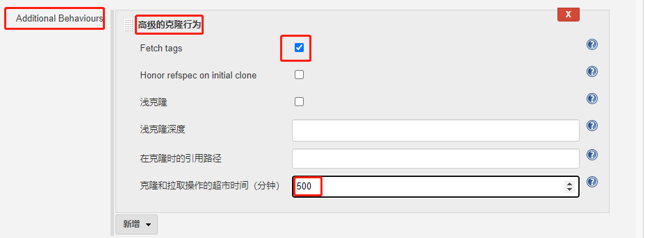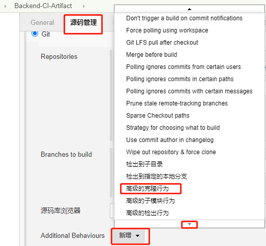 源码管理- -Additional Behaviours- -新增- - 点击最下边的小三角,找到高级的克隆行为