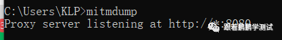 4、在命令提示符中输入:mitmdump。回车开始抓包。默认端口是8080。