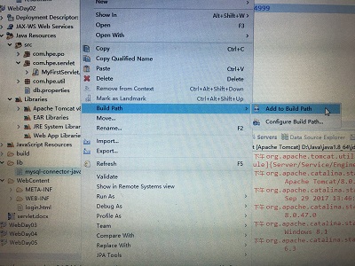 2.在导入的jar包上点击右键,选择Build Path->Add to Build Path.