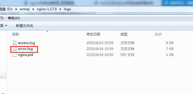 如果都没有可能是启动报错了查看一下日志,在nginx目录中的logs文件夹下error.log是日志文件