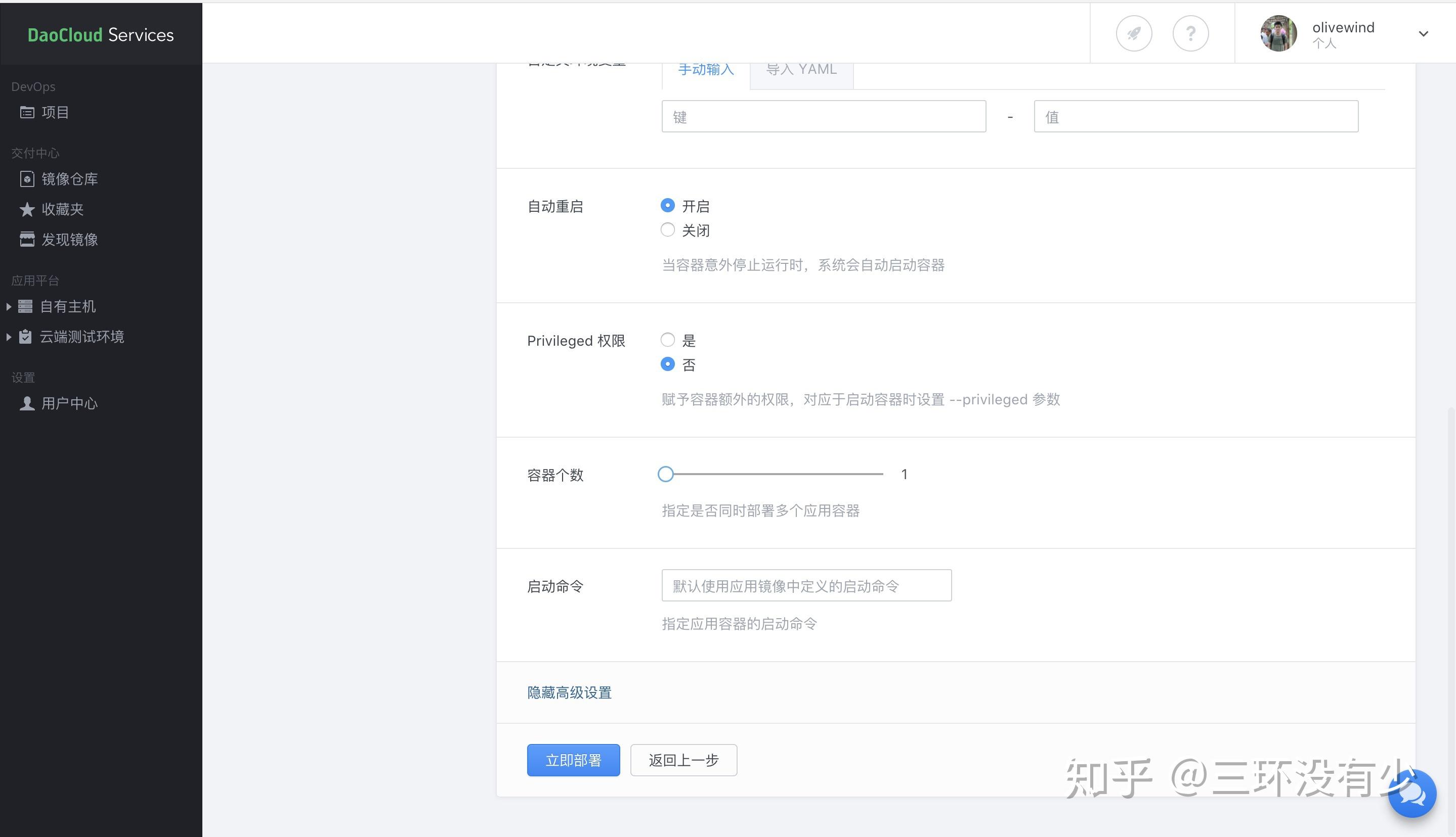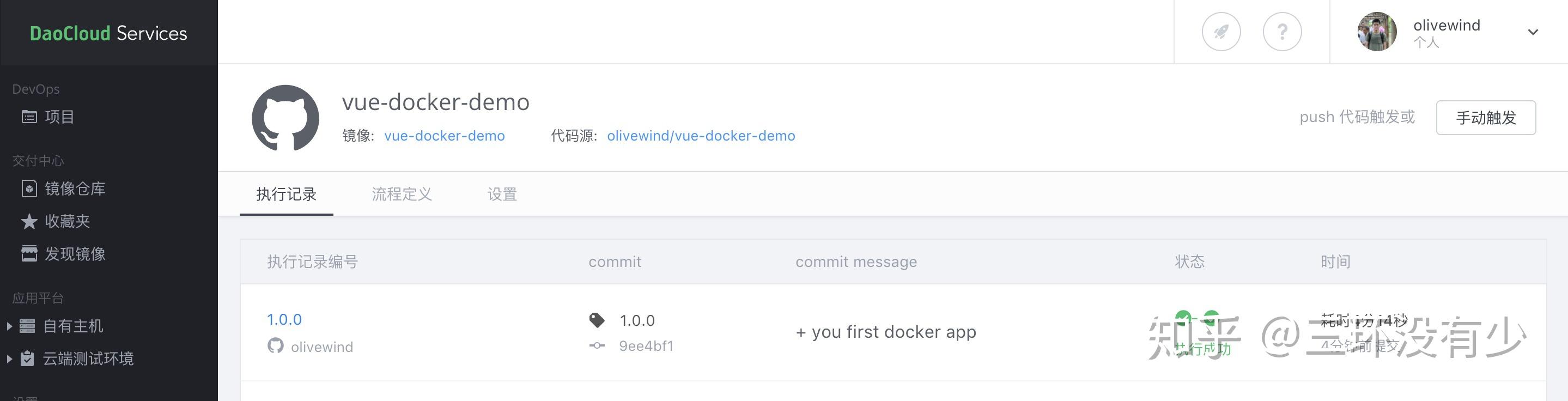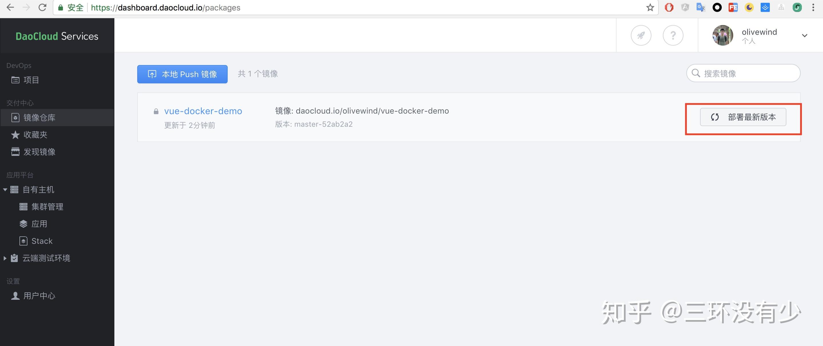 进入【镜像仓库】选择刚才手动构建出来的镜像,并部署最新版本到自由主机或者云端测试环境