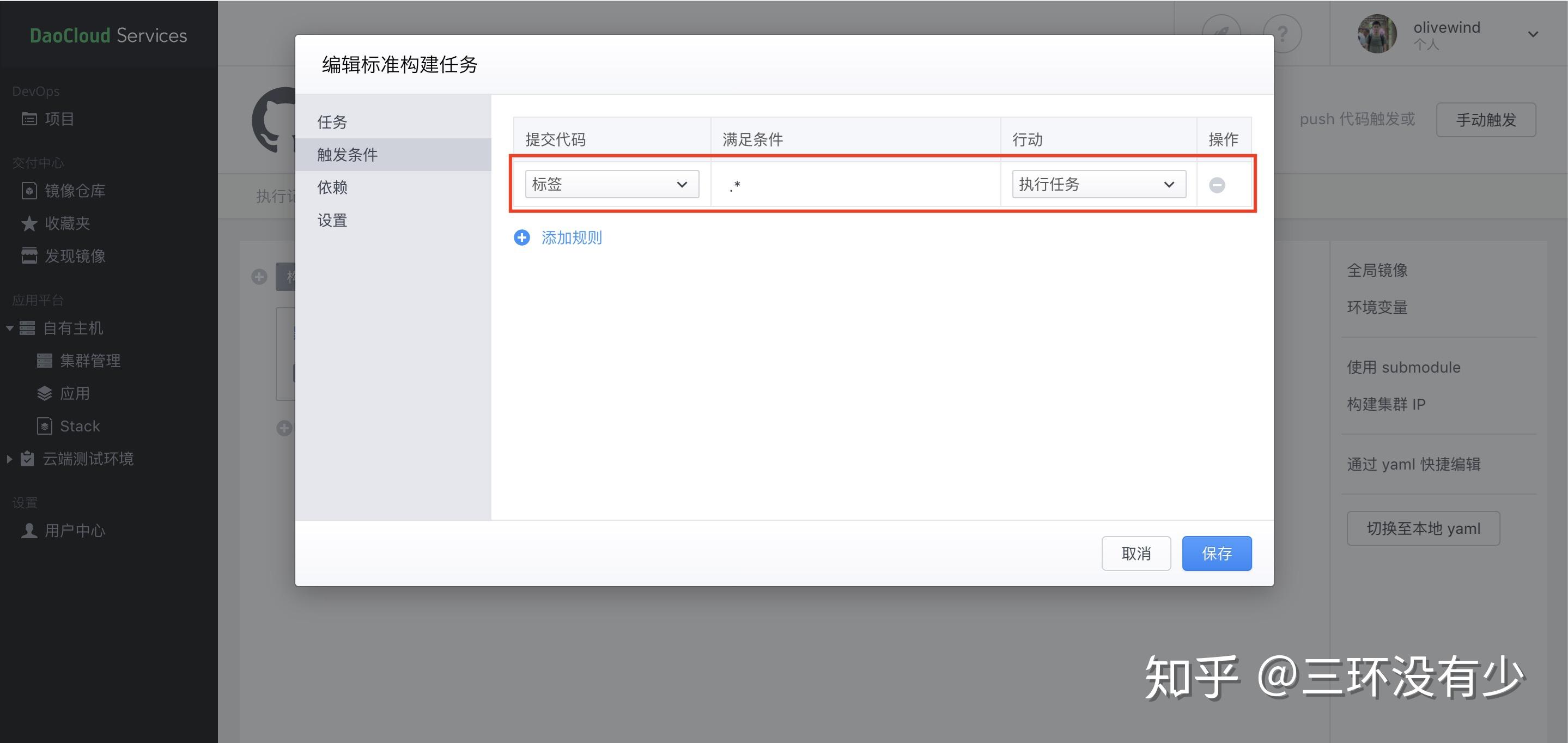 首先我们来定义一下自动构建任务,我们设定规则是只有在有新 tag 时才执行构建任务,构建时查找根目录下的 Dockerfile,并以此构建镜像