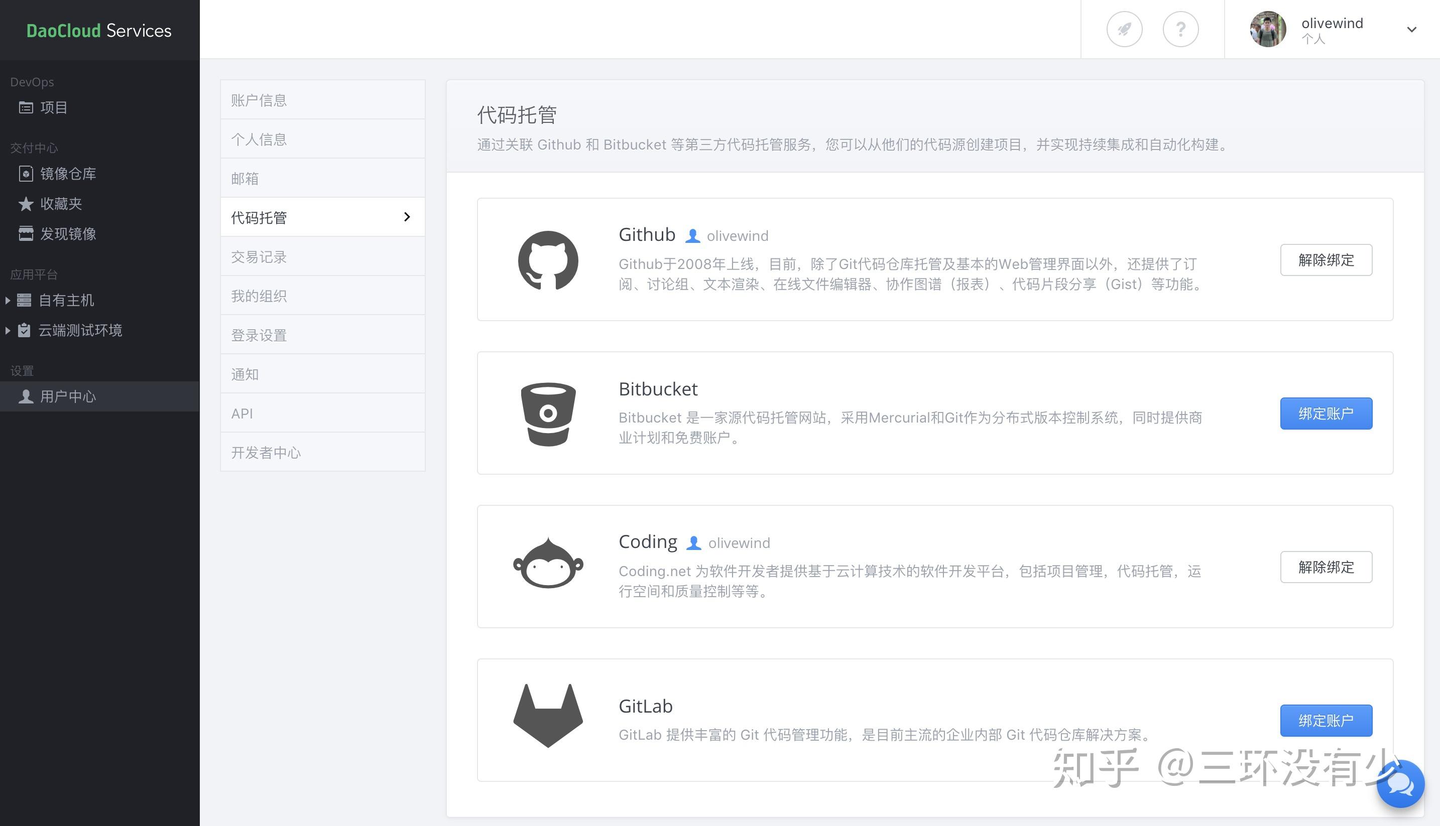 2. 用户中心 -> 代码托管,授权可访问你的 Github 仓库