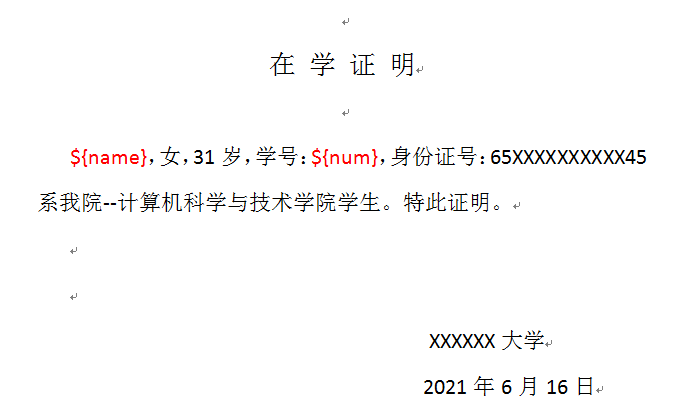 开发中遇到系统自动出常用证明的需求,例如某在校大学生要求学校开具在校证明,这类证明数量大格式统一,使用代码如何实现。