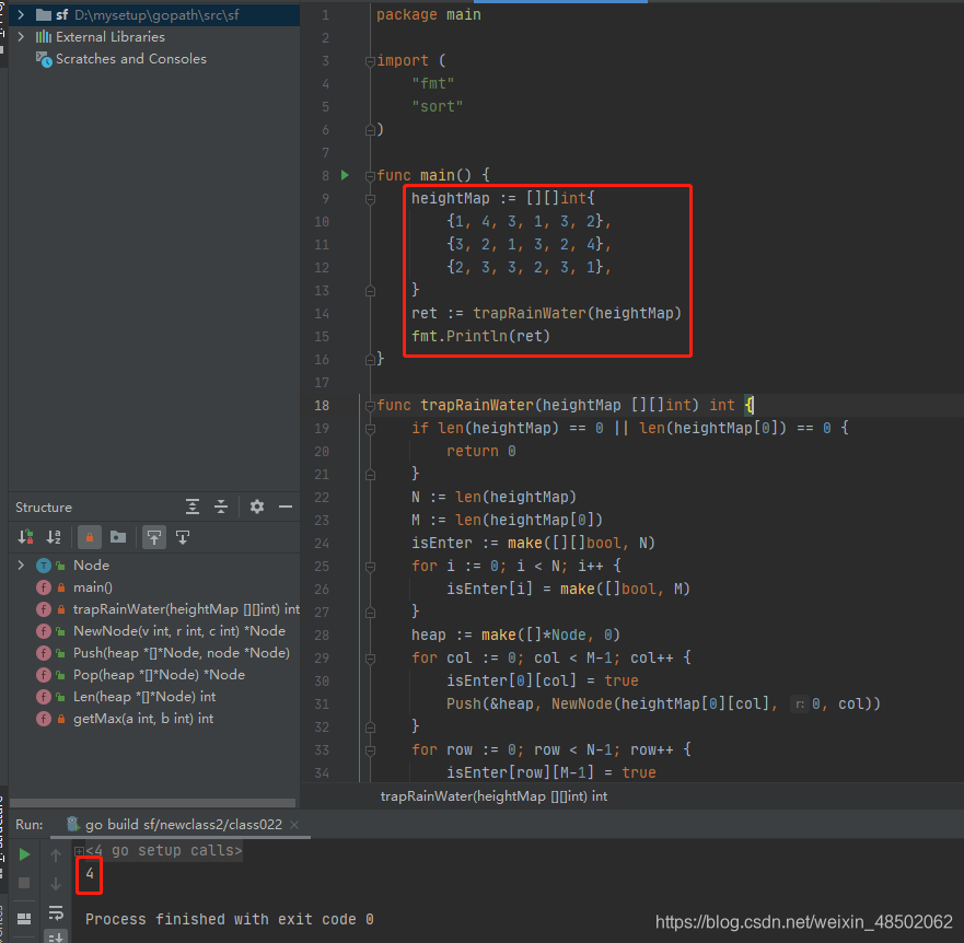 Push(&heap, NewNode(heightMap[r-1][c], r-1, c))