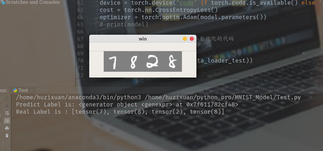 在解决了上述的问题后,使用经典的MNIST数据集训练的模型进行预测的结果也就展示出来了