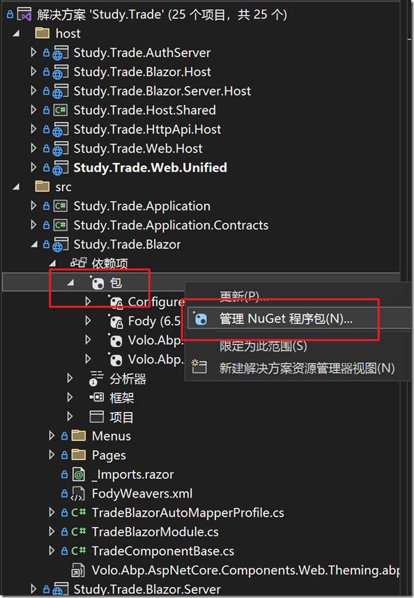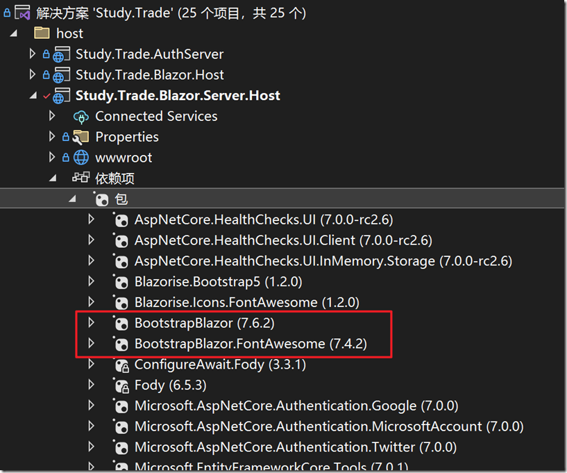 1、为Study.Trade.Blazor.Server.Host引入两个包