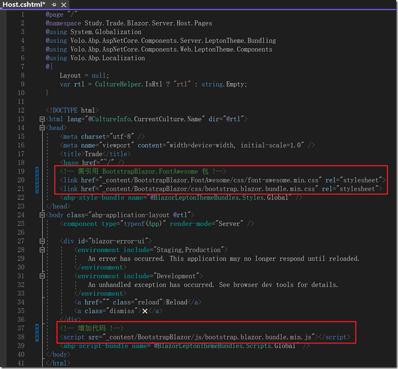 2、修改Study.Trade.Blazor.Server.Host的Pages目录下的_Host.cshtml文件