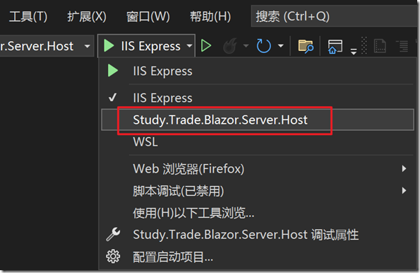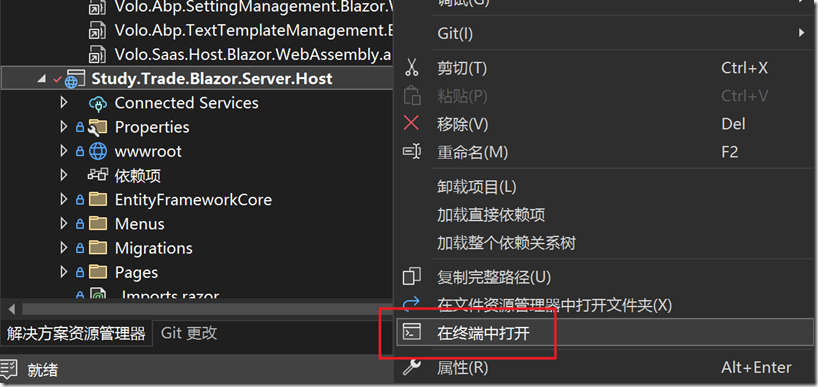 在Study.Trade.Blazor.Server.Host项目上点右键,选择“在终端中打开”