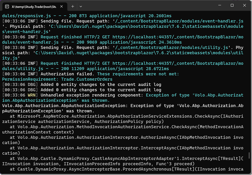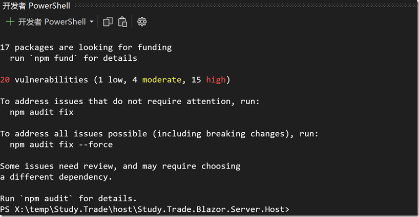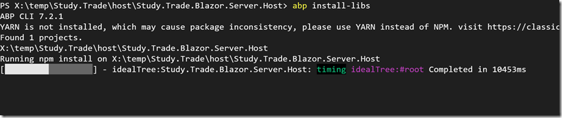 7、为Study.Trade.Blazor.Server.Host运行abp install-libs