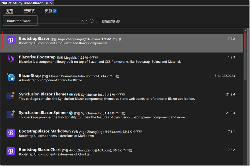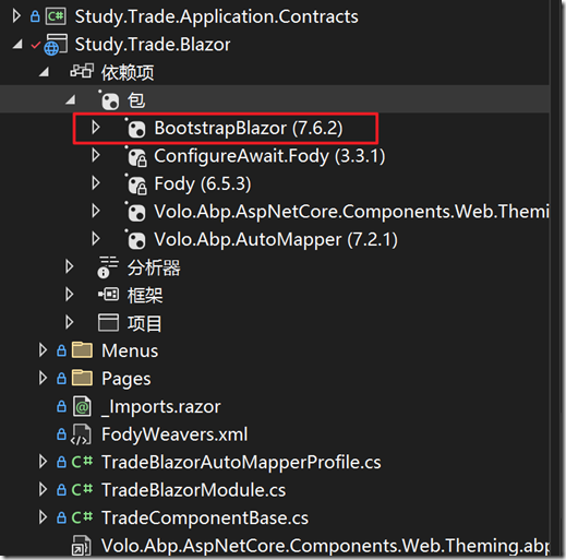 9、为Study.Trade.Blazor项目添加BootstrapBlazor的包