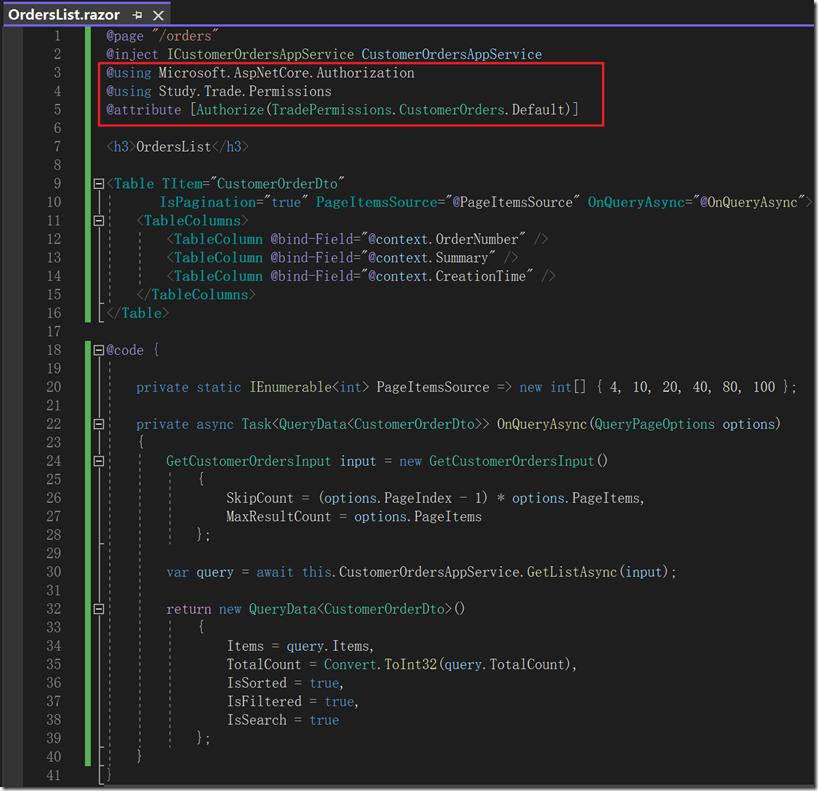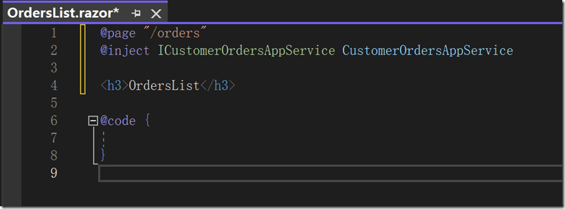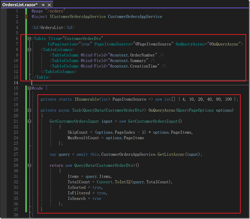 就是加一句@inject ICustomerOrdersAppService CustomerOrdersAppService