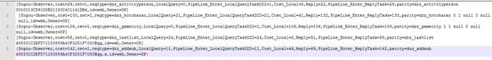 ['[Sogou-Observer,', '29,ret=1,reqtype=dzz_activityperson,LocalQuery=0,PipeLine_Enter_LocalQueryTaskDZZ=1,Cost_Local=8,Reply=22,PipeLine_Enter_ReplyTask=29,parity=dzz_activityperson0000013CD91D0B011830401141DB4,id=web,Owner=OP]\n']