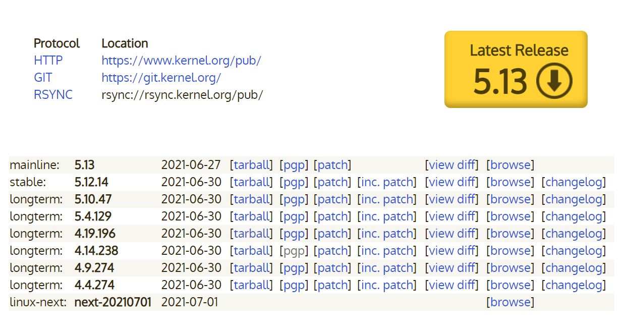Linux内核官网可以下载Linux内核版本、现行版本,历史版本,可以了解版本与版本之间的特性。
