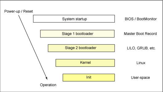 不管是Windows还是Linux操作系统,底层设备一般均为物理硬件,操作系统启动之前会对硬件进行检测,然后硬盘引导启动操作系统,如下为操作系统启动相关的各个概念: