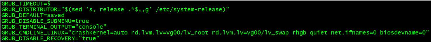 1、 编辑/etc/sysconfig/grub文件,命令为vi /etc/sysconfig/grub,在倒数第二行quiet后加入如下代码,并如图所示: