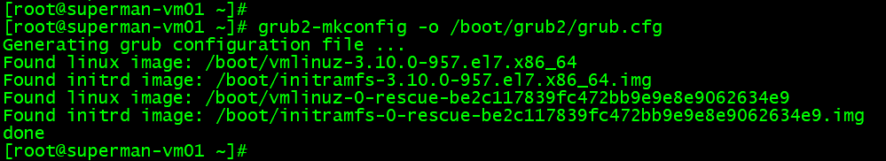 grub2-mkconfig -o /boot/grub2/grub.cfg
