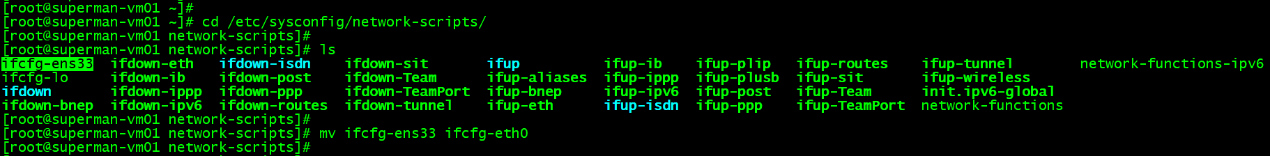 CentOS Linux 7.X服务器,默认网卡名为ifcfg-ens33,如果我们想改成ifcfg-eth0,使用如下步骤即可: