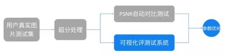 与业界的训练该方法不同,除了对比图片的损失(PSNR)外,他们还同时引入了可视化评测系统,使用用户的真实图片进行可视化评测,用于优化参数。