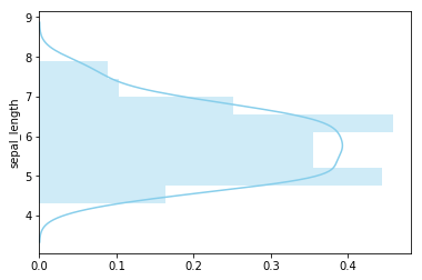 sns.distplot( df["sepal_length"] , color="skyblue", vertical=True);