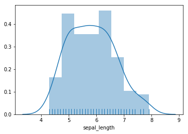 # 显示带数据分布和密度的直方图 Hist + Rug + kernel density