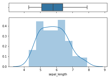 sns.distplot(df["sepal_length"], ax=ax_hist)