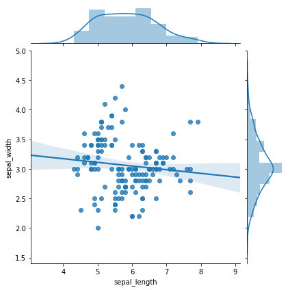 # 边际回归图 中间是带回归方程的散点图,边界是带密度分布的直方图