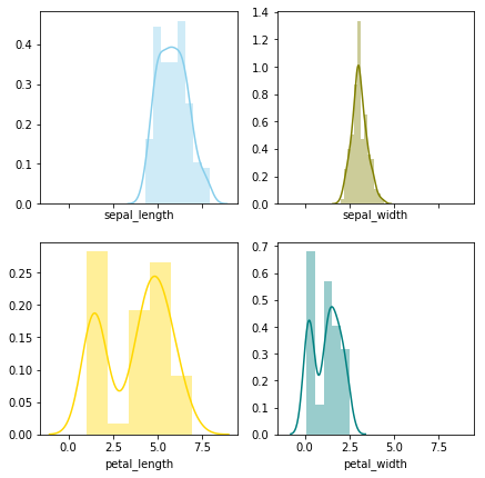 sns.distplot( df["sepal_length"] , color="skyblue", ax=axes[0, 0]);