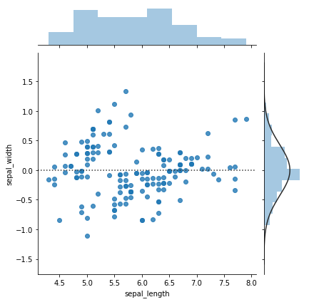 sns.jointplot(x=df["sepal_length"], y=df["sepal_width"], kind='resid');