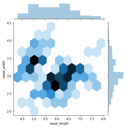 # 中央图表显示其相关性。它通常是散点图,hexbin图,2D直方图或2D密度图。
