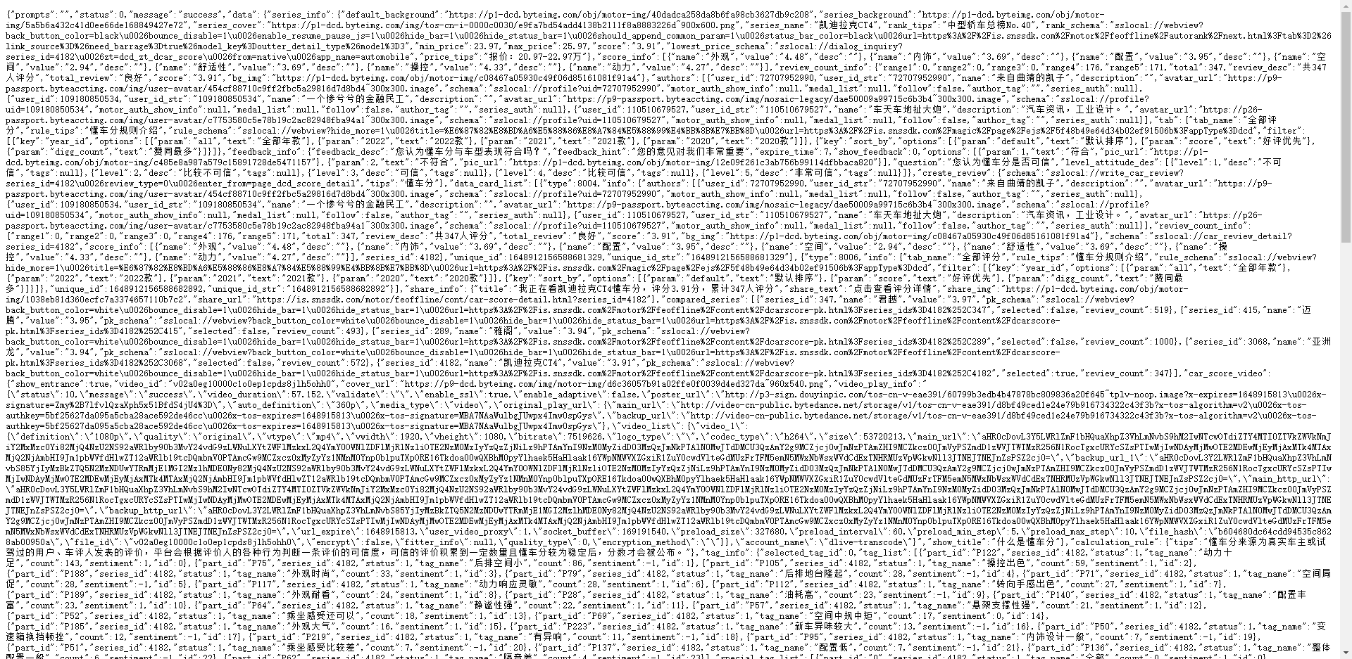 这儿推荐安装一个网页json可视化的插件,这儿偷懒没装,在线解析了一下json数据,和Charles抓到的数据是一样,经过分析得知: series_id是车系id,修改此参数即可