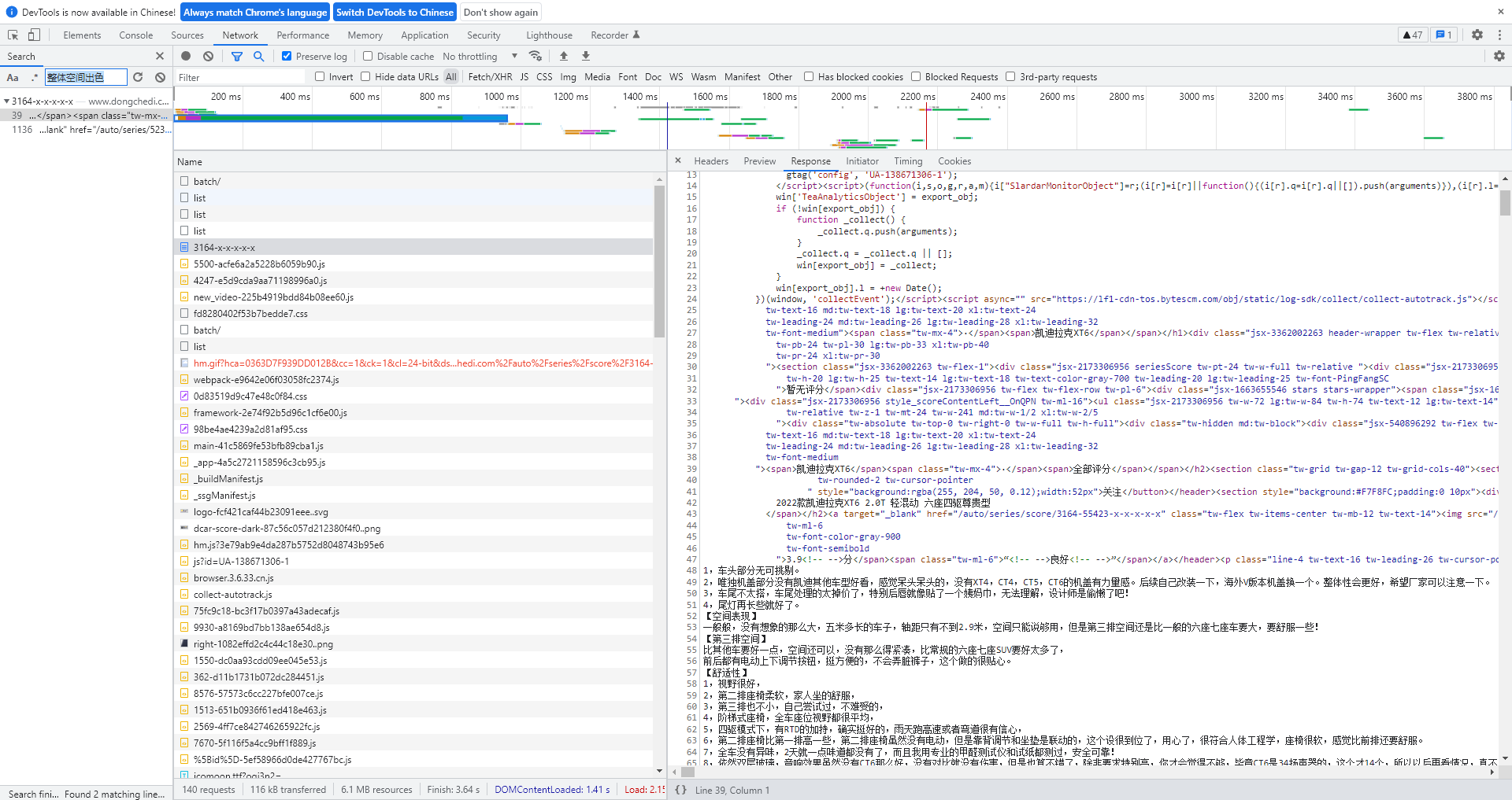 先来web端试下能否找到需要的数据接口,随便找个车型打开口碑页面F12查看Network