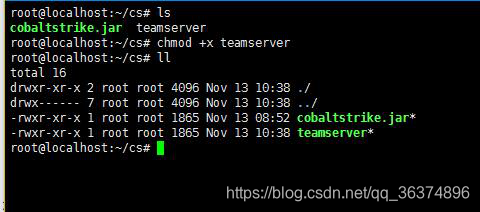 其中搭建团队服务器端的关键文件有两个,一个是cobaltstrike.jar,另一个是teamserver,这里我打算将团队服务器端搭在我的vps上。将这两个文件上传到我的vps中,注意这两个都需要,只传一个会报错,而且也不需要其他文件,其中需要对teamserver这个文件进行赋权操作。