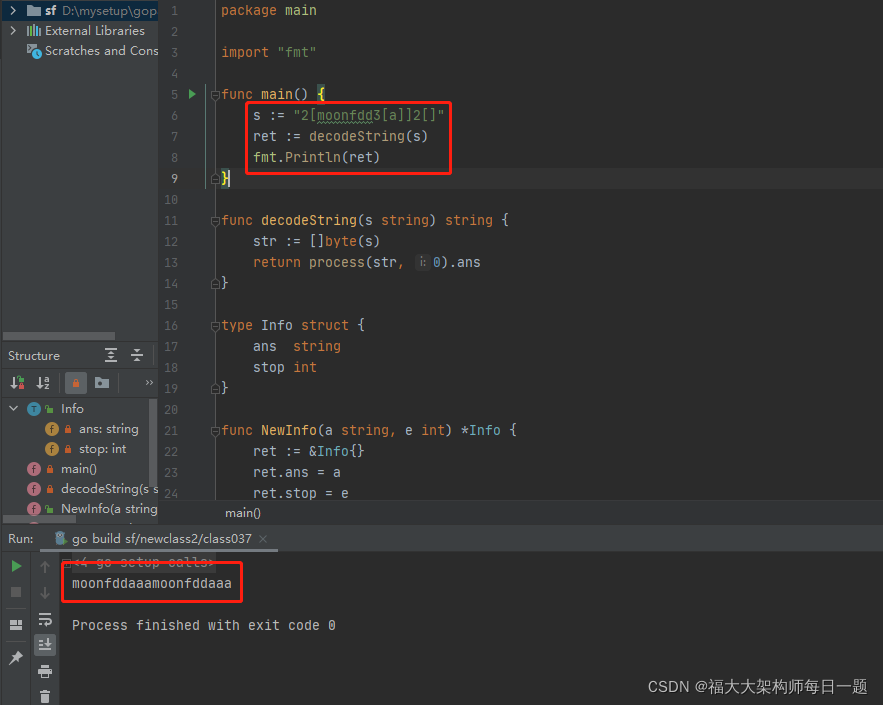 2021-12-13:字符串解码。给定一个经过编码的字符串,返回它解码后的字符串。 编码规则为: k[encoded_string],表示其中方括号内部的 encoded_string 正好重复 k