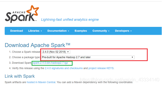 ①进入spark下载网站中https://spark.apache.org/downloads.html