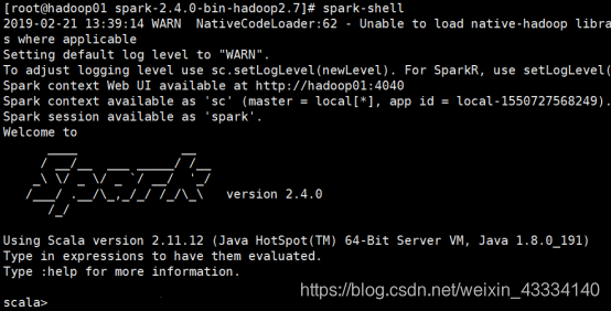 ⑧在Master机器上执行 spark-shell命令。会出现如下语句