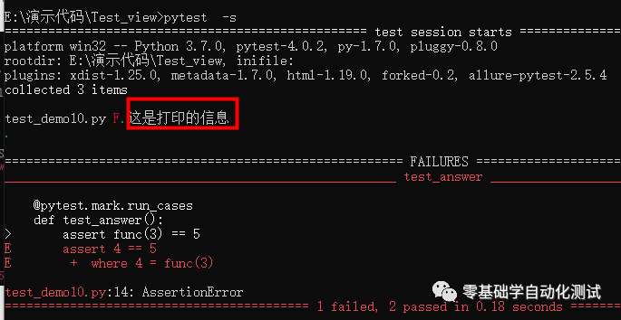 在运行测试脚本时,为了调试或打印一些内容,我们会在代码中加一些print内容,但是在运行pytest时,这些内容不会显示出来。如果带上-s,就可以显示了。
