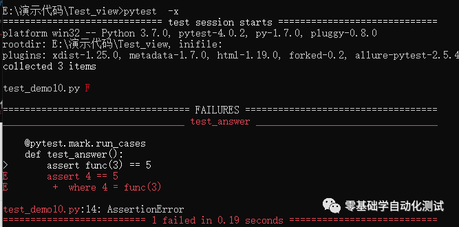 --exitfirst 遇到错误或者用例不通过,则退出执行.