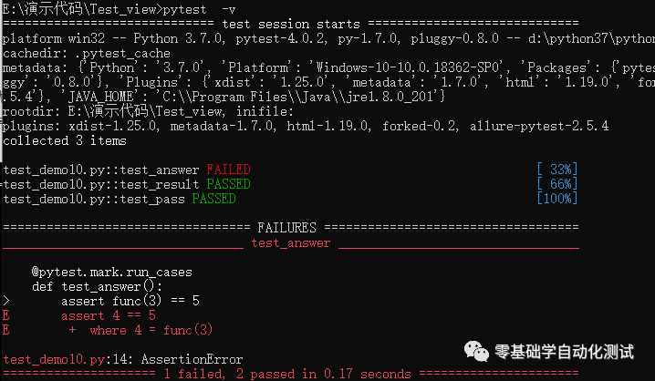 -v:pytest -v 说明:可以输出用例更加详细的执行信息,比如用例所在的文件及用例名称等