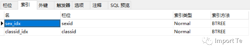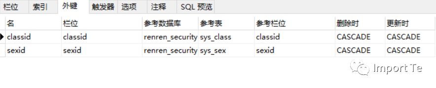 新建的两个表给上数据然后在sys_student表中增加两个外键(一般都会自动建立索引,如果没有就自己建)如图: