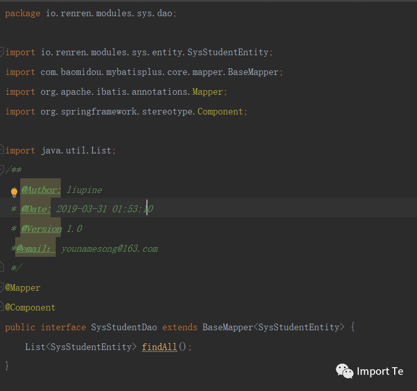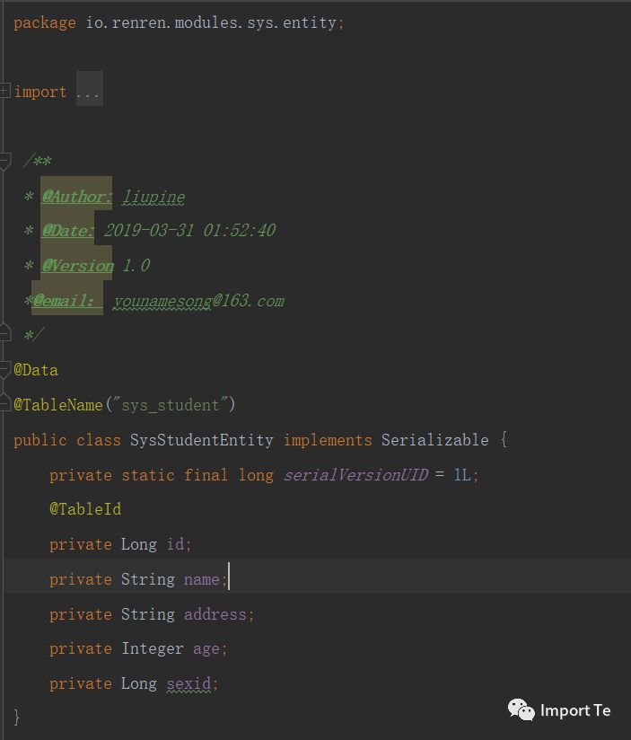 2.1首先从实体类开始,创建SysStudentEntity的实体类