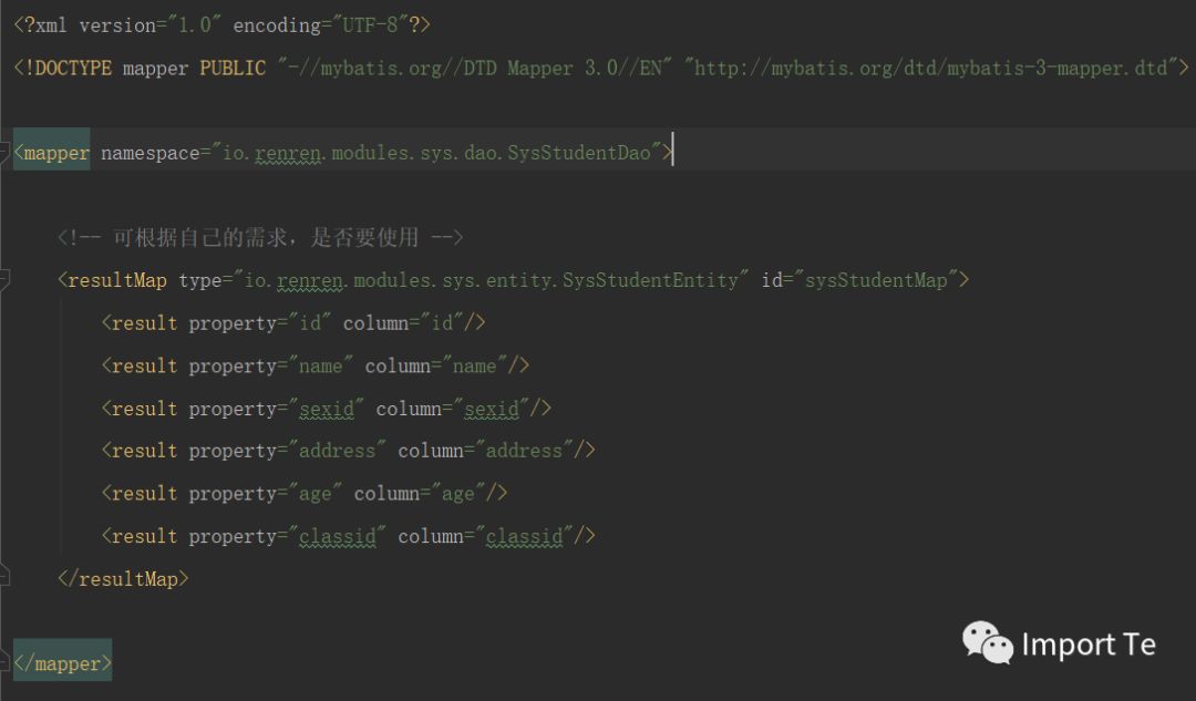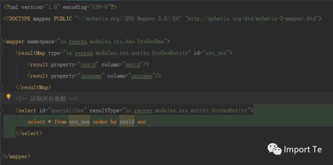 2.3xml文件(可使用mybatis-plugin插件在Dao层中快捷生成xml文件部分)