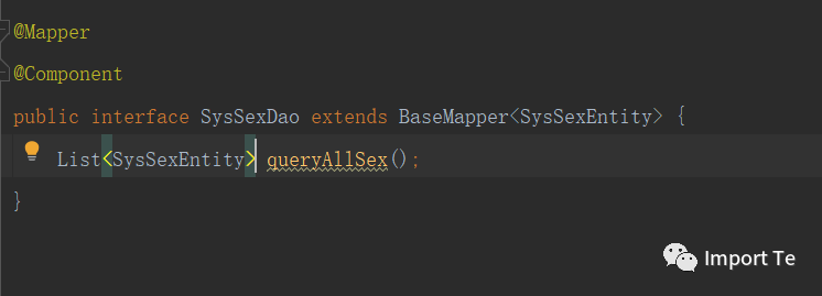 在使用Mybatis-Plus中我们可能用到一个比较多的类是BaseMapper接口,其最终也是利用的Mybatis接口编程的实现机制,其默认提供了一系列的增删改查的基础方法,并且开发人员对于这些基础操作不需要写SQL进行处理操作(Mybatis提供的机制就是需要开发人员在mapper.xml中提供sql语句),那样我们可以猜测肯定是Mybatis-Plus完成了BaseMapper接口提供的方法的SQL语句的生成操作。